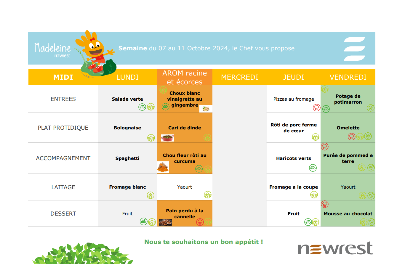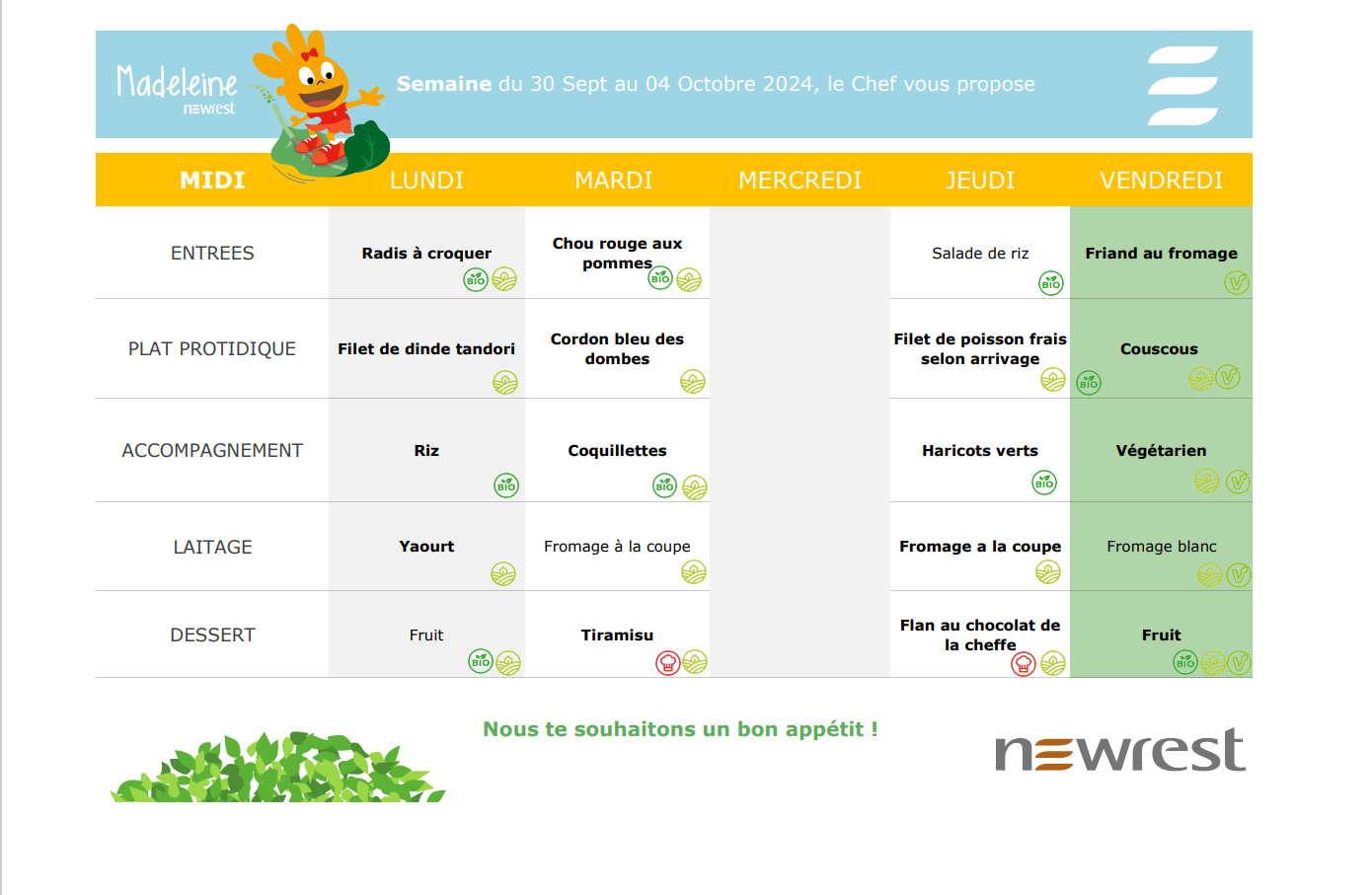 Menus de la cantine de l’école du Saint Nom de Jésus Semaine du 30 septembre au 4 octobre 2024 Semaine du 7 au 11 octobre 2024